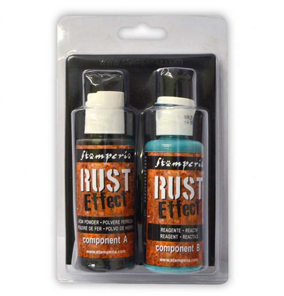 “Эффект ржавчины " состоит из двух компонентов: компонента "А" (порошкообразное железо 80 гр) и компонента "В" (реагент 80 мл). Способ применения: 1. Насыпьте часть компонента "А "на поверхноcть. Можно смешать с любой пастой Stamperia (гипс, мягкая паста, гелевая паста и т. д..) 2. Вылейте несколько капель реагента "B" поверх смеси. Чем больше реагента "B" вы используете, тем сильнее эффект ржавчины проявится примерно через 24 часа. После использования кистей промойте их водой.