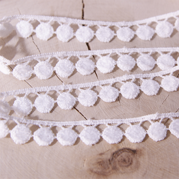 Кружево хлопковое 1 см "Кружочки", цвет молочный белый