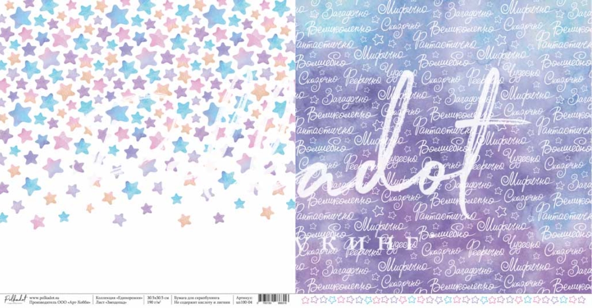 Бумага Polkadot. Коллекция "Единорожки" Звездопад (PKD-229-5)