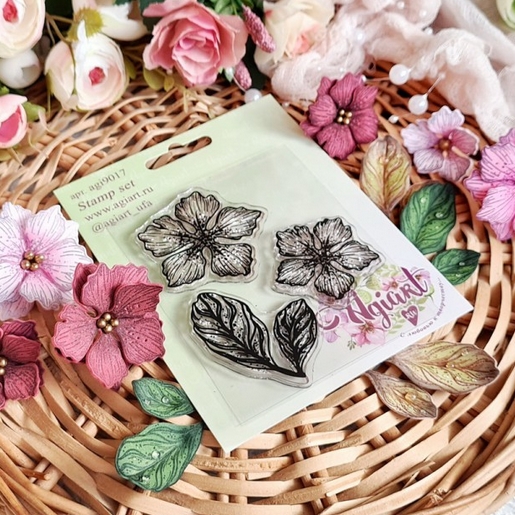 Штампы фабричного производства из качественного прозрачного полимера. В комплекте 3 шт. Размеры: Мальва: 45*45 мм, 35*35 мм, листочек: 50*34 мм. Штампы подходят к ножам agi1563 "Дикая мальва" и agi1565 "Очарование"
