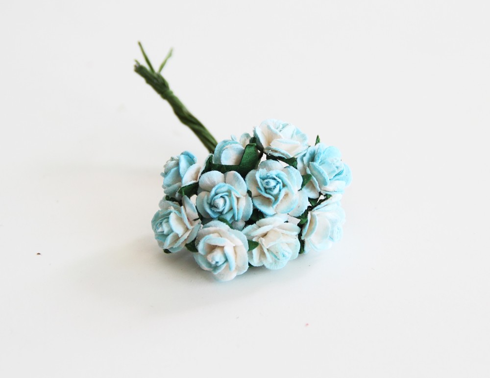 Букет микро-розочек открытых. Цвет бело-голубой