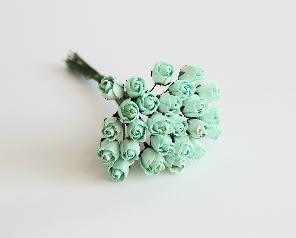 Букет мини-бутонов роз полуоткрытых, 25 штук, цвет мятно-голубой