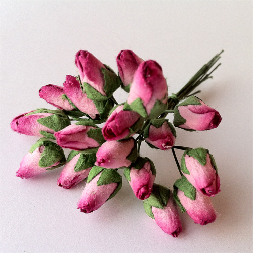 В букете 20 розочек. Размер бутона 8 мм. Длина букета со стеблем 11 см. Можно использовать как в букете, так и поштучно.