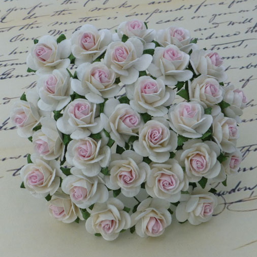 Букет розочек открытых 2 см. Цвет белый с бледно-розовой серединкой