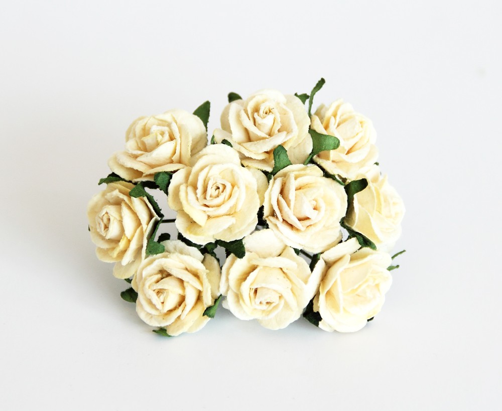 Букет розочек открытых 2 см. Цвет бледно-жёлтый