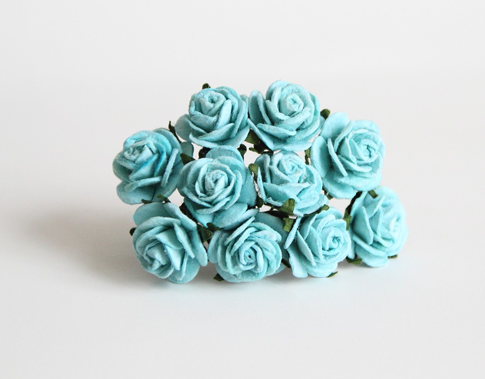 Букет розочек открытых 2 см. Цвет мятно-голубой