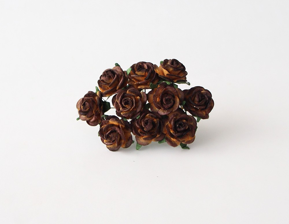 Букет розочек открытых 2 см. Цвет шоколад с бежевым