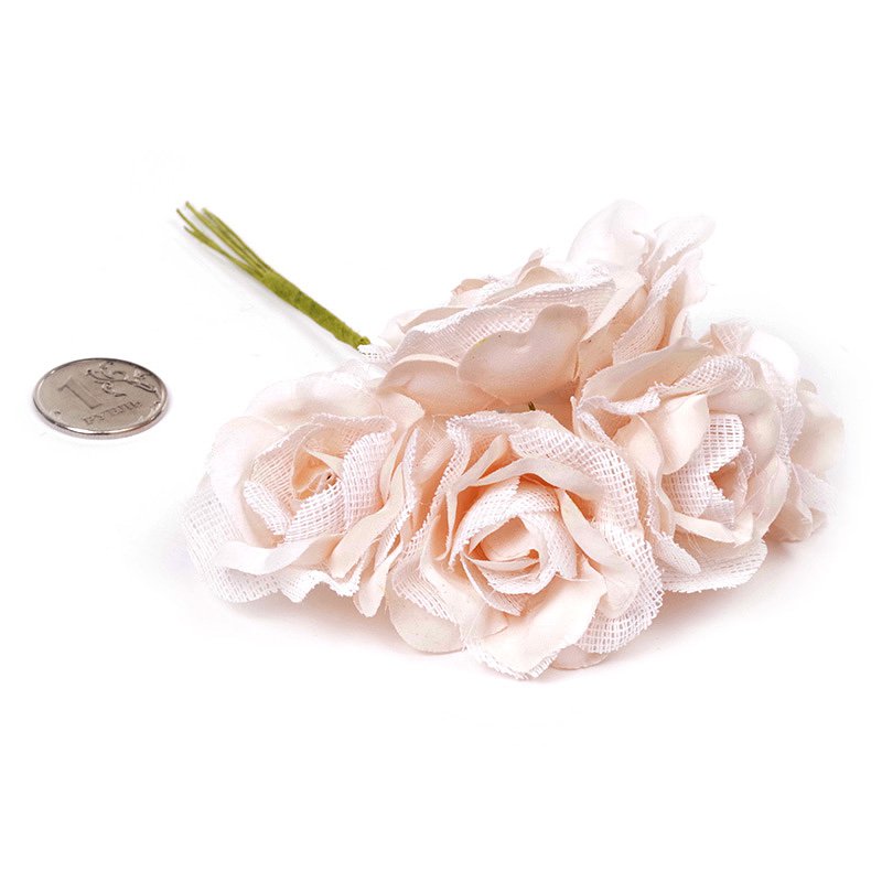 Букет тканевых полуоткрытых роз 4 см "Бледный персик", в упаковке