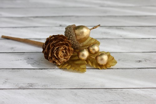 Букетик Hobby&You с сосновой шишкой и ягодками, золотой