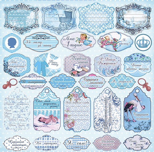 Бумага CraftPremier "Малыш и малышка", Теги голубые (CRP2)