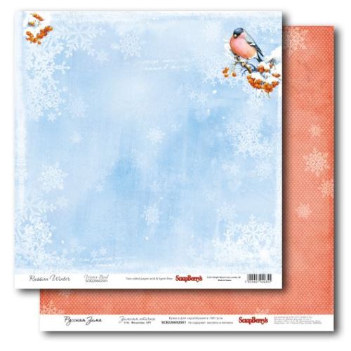 Бумага Scrapberrys "Русская Зима", Зимняя Птичка (SB216)