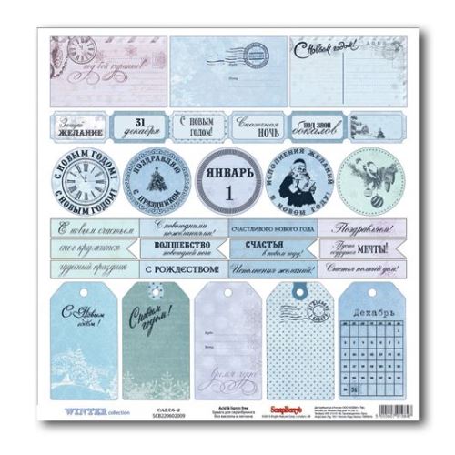 Бумага Scrapberrys "Русская Зима", карточки С Новым годом (SB224)