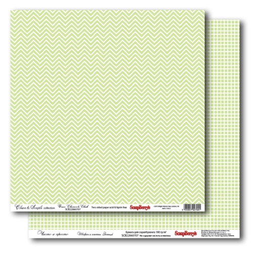 Бумага Scrapberrys "Шеврон и клетка Зеленый" (SB305)