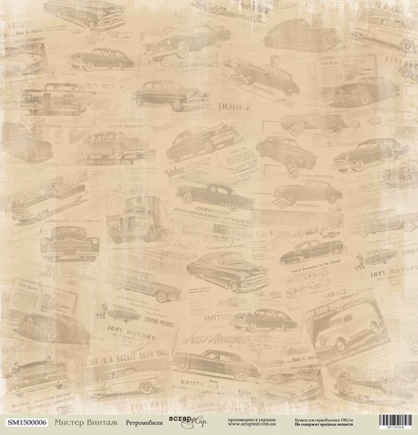 Бумага Scrapмир "Мистер Винтаж", Ретромобили (SM133)
