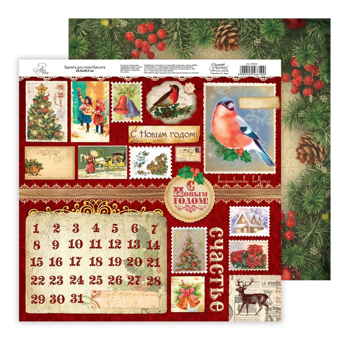Бумага для скрапбукинга АртУзор "Новогодняя история" Марки (ART76),