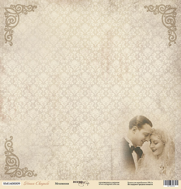 Бумага односторонняя. Коллекция "Наша свадьба". Мотив "Мгновения" (SM20)