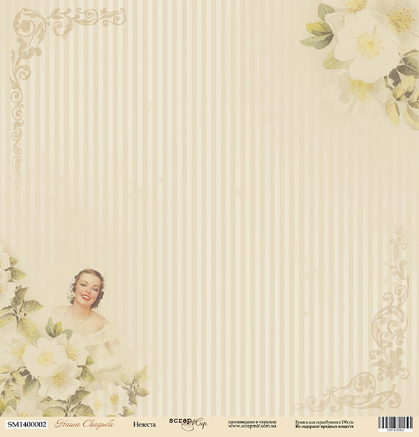 Бумага односторонняя. Коллекция "Наша свадьба". Мотив "Невеста" (SM19)