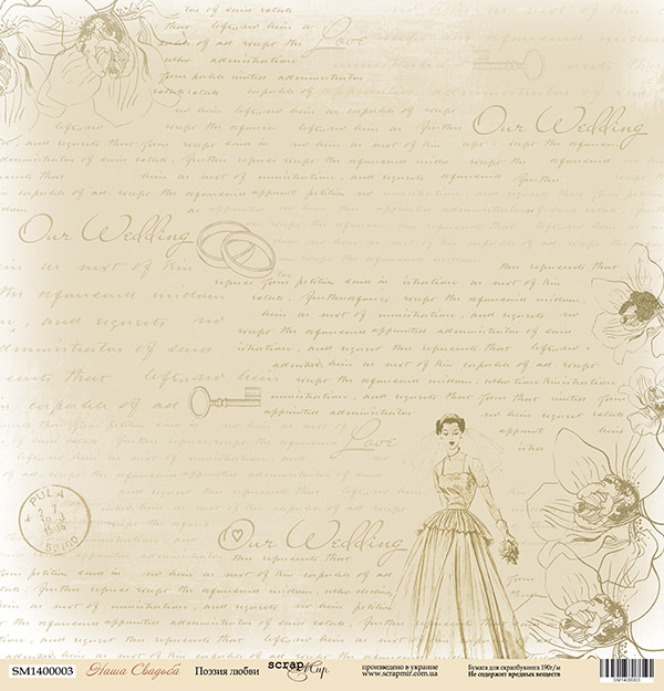 Бумага односторонняя. Коллекция "Наша свадьба". Мотив "Поэзия любви" (SM22)