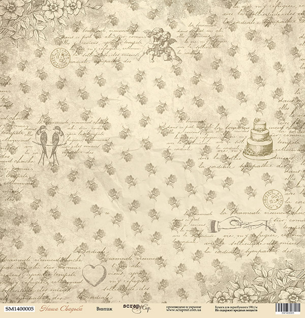 Бумага односторонняя. Коллекция "Наша свадьба". Мотив "Винтаж" (SM24)