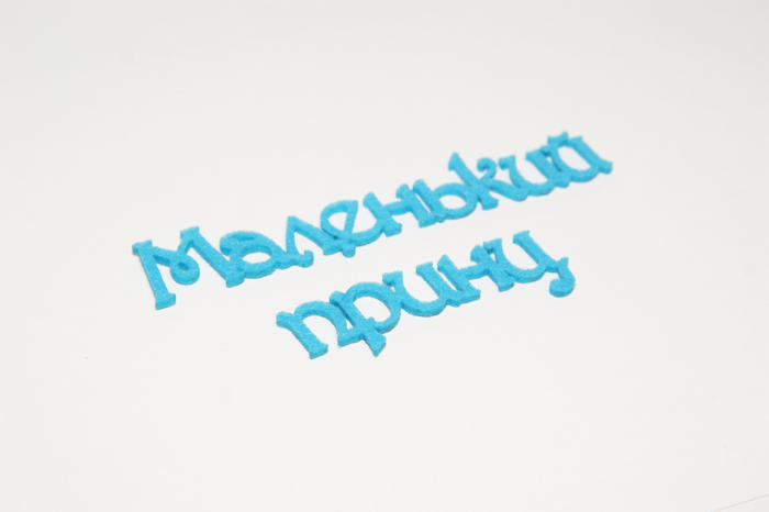 Украшение из фетра голубого цвета толщиной около 1,5мм. Высота каждого слова около 1,5см.