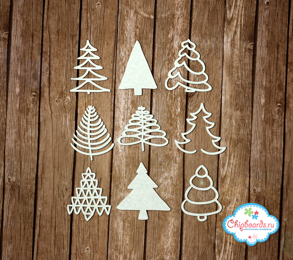 Высота елочек - 3 см. Чипборд выполнен из материала толщиной 0.9 мм.