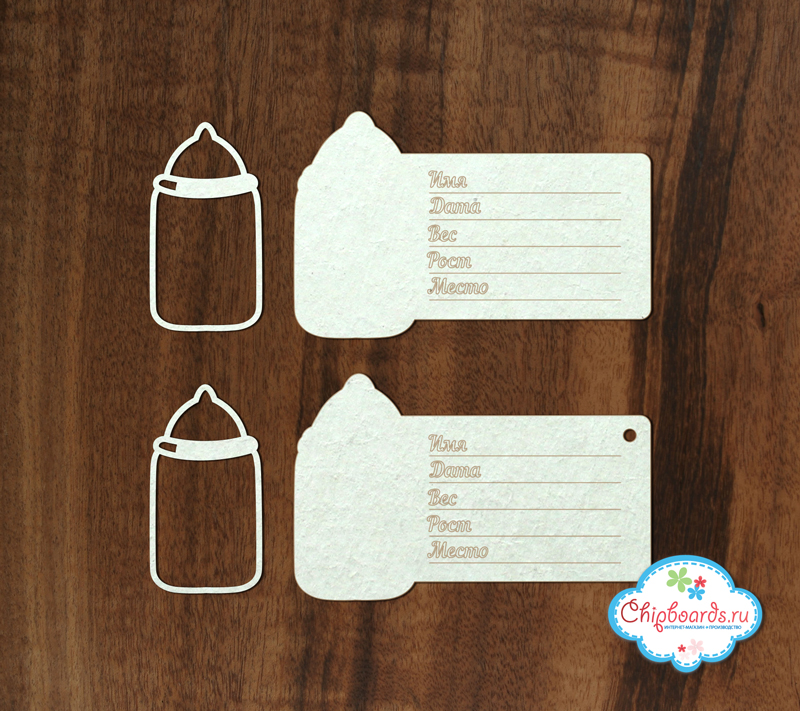 Размер одной 6 Х 4 см. Используется гравировка. Чипборд выполнен из материала толщиной 0.9 - 1.15 мм.