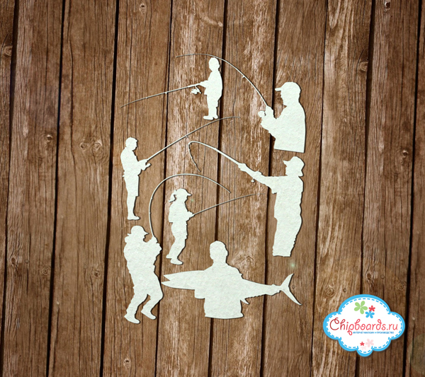 Высота рыбаков от 9 до 4 см. Чипборд выполнен из материала толщиной 0.9 мм.
