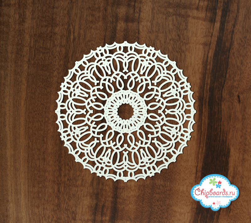 Диаметр 9 см. Чипборд выполнен из материала толщиной 0.9 - 1.15 мм