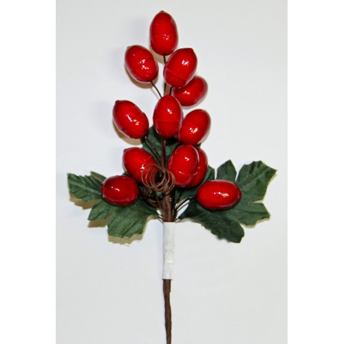 Декоративный букетик "Гроздь красных ягод".Одна ветка с листоками и ягодами. Размер ягод около 1,5 см. Длина веточки около 15 см.