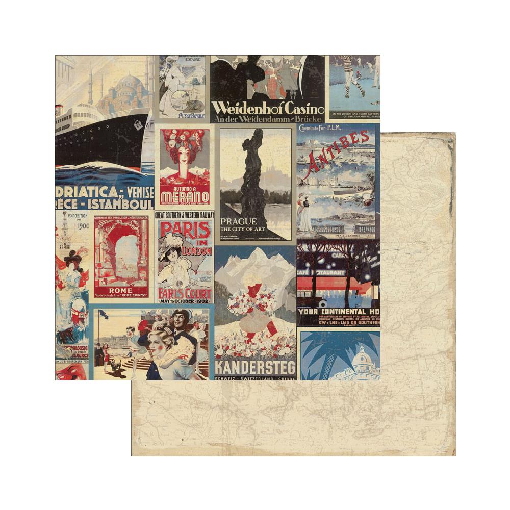 Двусторонняя бумага для скрапбукинга Authentique "Abroad", Travel (AU78)