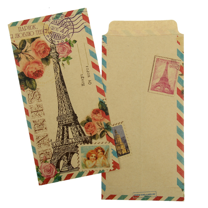 Конверты бумажные 17,6 х 8,7 см "Париж", 6 шт