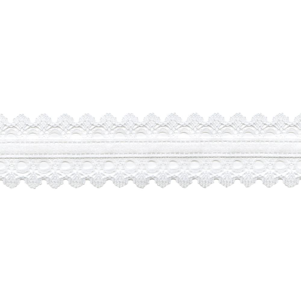 Кружево May Arts c прострочкой сатиновой лентой. Цвет белый