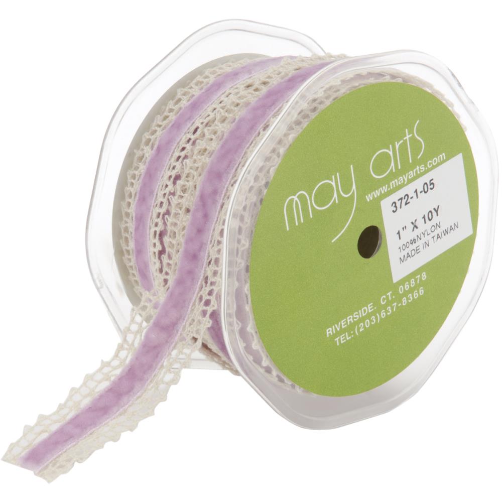 Кружево с вельветовой лентой May Arts, бежевый с лавандовым