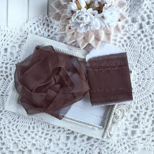 Лента "Искусственный шёлк" Тёмный шоколад Узкая