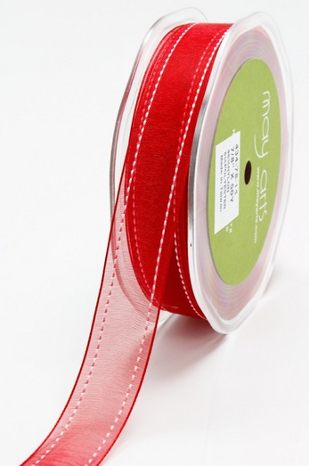 Лента May Arts прозрачная с прострочкой. Цвет красный
