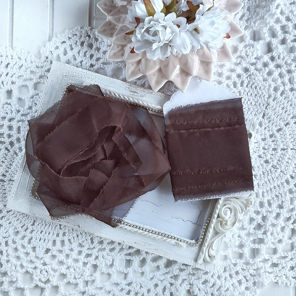 Лента "Искусственный шёлк" Тёмный шоколад СРЕДНЯЯ