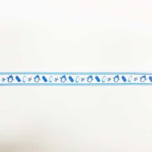 Лента атласная 12 мм с рисунком "Соски и бутылки голубые"