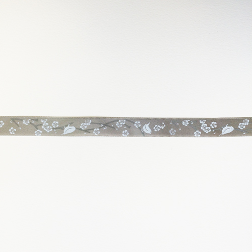 Лента атласная 12 мм с рисунком "Цветы и птички"