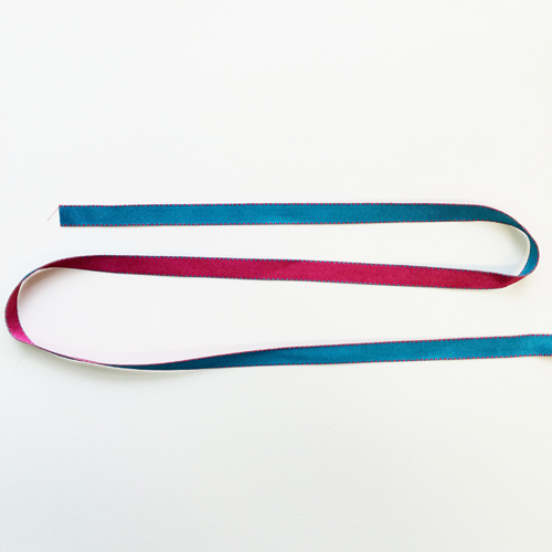 Лента атласная двусторонняя бирюзовая/фуксия с прострочкой, 10мм