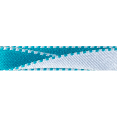 Лента атласная двусторонняя бирюзовая/голубая с прострочкой, 10мм