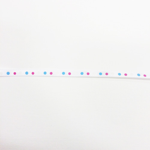 Лента атласная голубые, красные, белые точки на белом, 6 мм