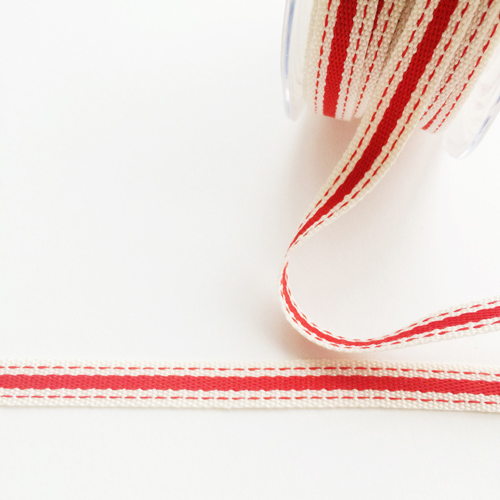 Лента хлопковая 1 см "Красная полоска и прострочка"