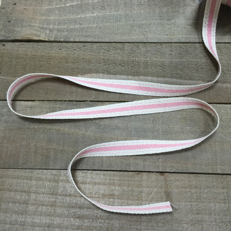 Лента хлопковая 1 см "Розовая полоска и прострочка"