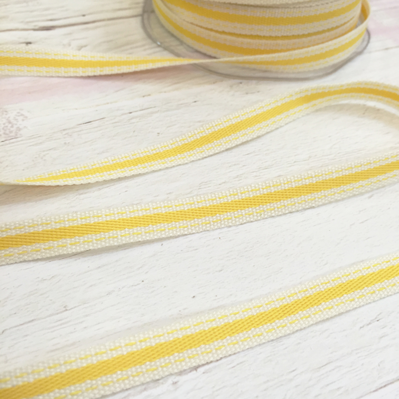 Лента хлопковая 1 см "Жёлтая полоска и прострочка"
