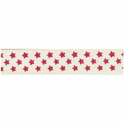 Лента на катушке хлопковая Gamma "Красные звёзды на кремовом"