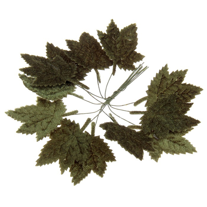 Набор листиков с бархатным покрытием. Размер 5 х 2,5 см. Длина "ножки "5-6 см
