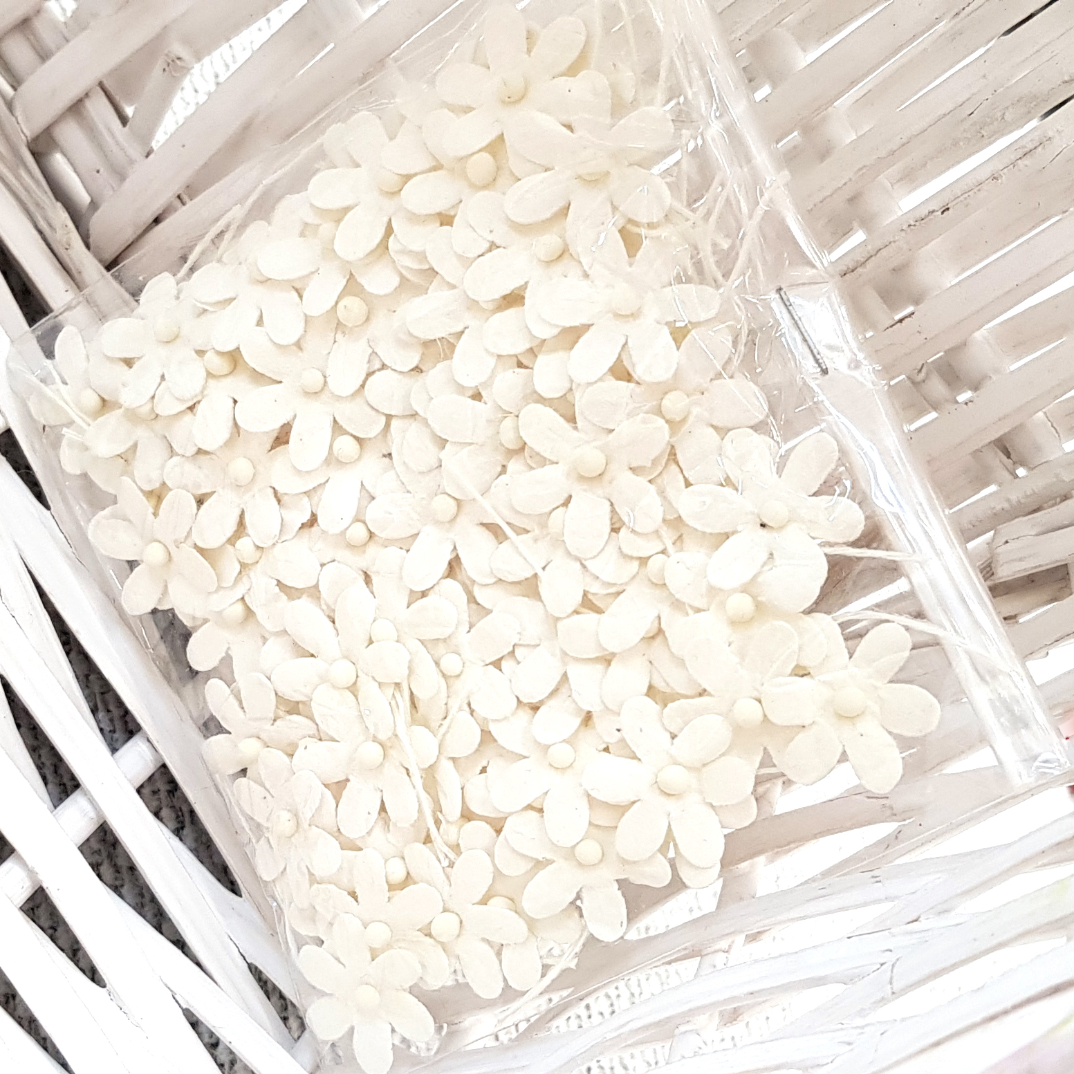 Мини-цветочки 1,5 см на стебельке, цвет белый, 100 штук