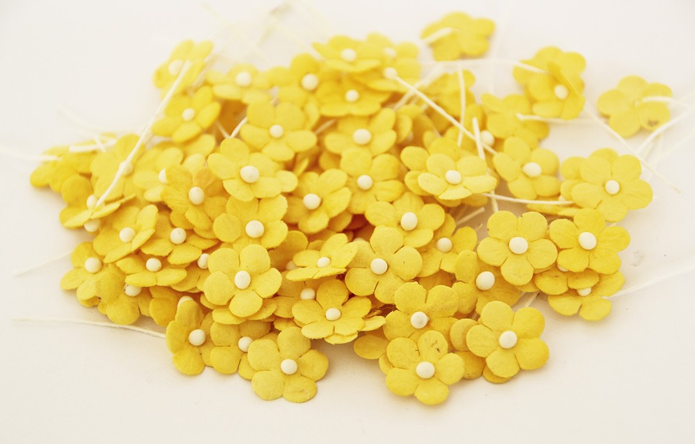 Мини-цветочки 1 см на стебельке, цвет жёлтый, 100 штук