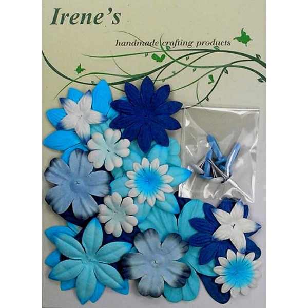 В наборе 24 элемента: 18 цветочков и 6 брадс диаметром 8 мм.