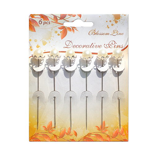 Набор булавок с жемчужинкой, кремовый, 8 мм, 6шт.